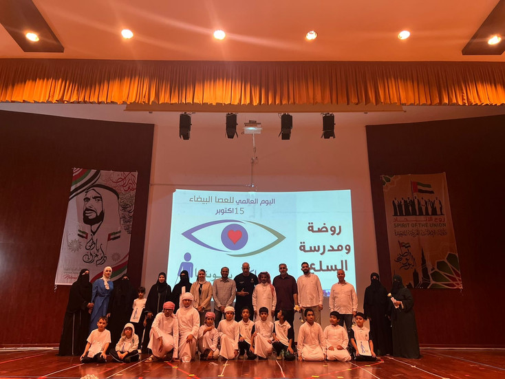 قام فريق التعليم الدامج )مدرسة السلع( بتفعيل اليوم العالمي للعصا البيضاء وذلك لبث روح التعاون والتضامن مع المكفوفين ويقام اليوم العالمي للعصا البيضاء يوم 15 أكتوبر ويهدف الى تشجيع المكفوفين على استخدام العصا البيضاء كوسيلة للتحرك وتهدف االحتفالية الى نشر الوعي بحقوق المكفوفين وتناقش العزل االجتماعي الذي يتعرضون اليه وكان أفضل ما نبدأ به أذاعتنا وعرض يقدمه مجموعة من الطلبة أصحاب الهمم يرافقهم طلبة اخرون تم تقديم مشهد تمثيل يوضح التضامن مع الكفيف وعمل مجموعة من المسابقات تحت عنوان " أغمض عينيك لدقائق " لتجربة معاناة الكفيف وتم عمل دعوة لمشاركة مدارس مدينة السلع وعمل مجموعة من العروض في مسرح المدرسة وكان أولها عزف النشيد الوطني االماراتي بأيدي الطالبة الكفيفة " روضة صالح المنصوري " من مدرسة بعيا وتقديم عرض رياضي تحت عنوان " أراكم بقلبي " من تقديم فريق الكراتية وعرض مشهد تمثيلي تحت عنوان "عيني الثانية" وفي ختام فقراتنا تم عرض فلم عن الكفيف .